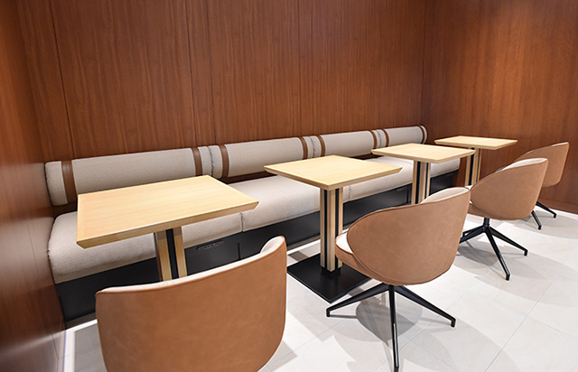 鹿児島空港サクララウンジのテーブル席(右)とベンチ席=18年2月27日 PHOTO: Yusuke KOHASE/Aviation Wire