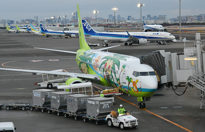 羽田空港で出発を待つソラシド初の全面塗装機となる「ナッシージェット宮崎」=23年3月2日 PHOTO: Yusuke KOHASE/Aviation Wire