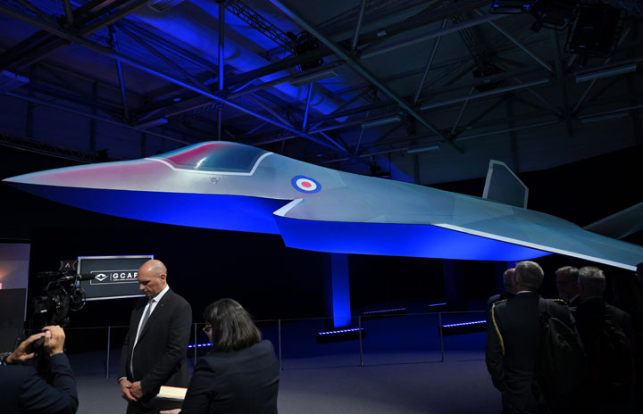 ファンボロー航空ショーでお披露目され英国空軍向けデザインが投影されたGCAPの新モックアップ=24年7月22日 PHOTO: Tadayuki YOSHIKAWA/Aviation Wire