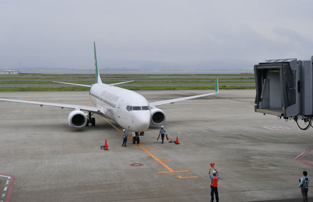 機材はボーイング737-800型機で、1クラス189席。運航スケジュールは曜日により異なり、初便の水曜は関空行きIJ651便が成田を正午に出発し、午後1時30分に到着。成田行きIJ652便は関空を午後2時35分に出発し、午後3時58分に到着した。