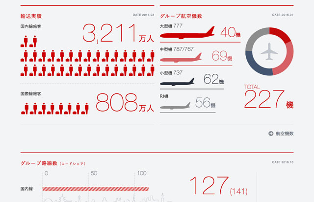リニューアルオープンしたJALの企業ホームページのインフォグラフィック
