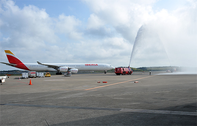 イベリア航空(IBE/IB)は現地時間10月18日、マドリード-成田線の運航を週3往復で再開した。同路線の運航は1998年11月以来、17年11カ月ぶり。日本着初便となったIB6801便(エアバスA340-600型機、登録番号EC-LEV)は日本時間19日午前9時10分、成田空港に着陸した。