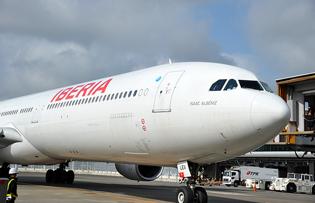 17年11カ月ぶりに再就航したイベリア航空=16年10月19日 PHOTO: Yusuke KOHASE/Aviation Wire