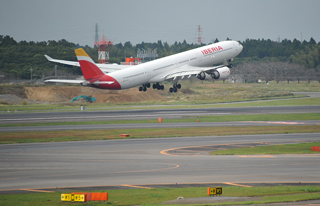 成田発初便のIB6800は午前11時45分に離陸し、マドリードに向かった。成田空港のターミナルは、共同事業(JV)を展開する日本航空(JAL/JL、9201)とブリティッシュ・エアウェイズ(BAW/BA)、フィンエアー(FIN/AY)と同じ第2ターミナルを使用する。