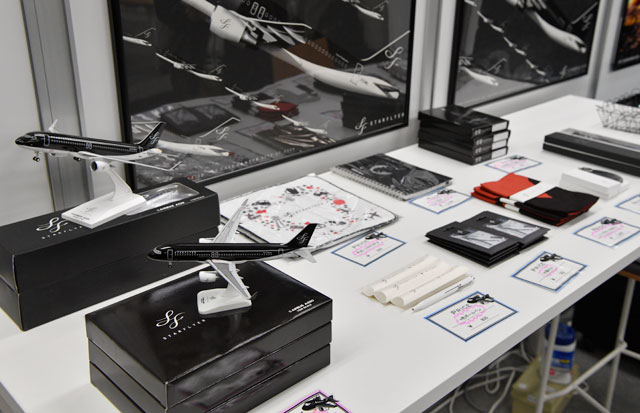 スターフライヤーが有楽町に開いたアンテナショップで扱うモデルプレーンや機内販売品=16年11月11日 PHOTO: Tadayuki YOSHIKAWA/Aviation Wire