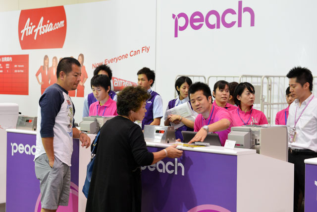 ピーチのチェックインカウンター=10月18日 PHOTO: Tadayuki YOSHIKAWA/Aviation Wire