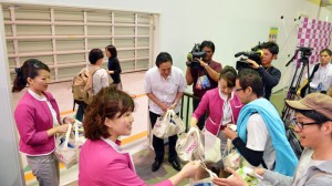 記念式典では、客室乗務員も関西弁であいさつ。機内アナウンスを関西弁で行っているAPJのカラーを出した式典となった。登場が始まると井上CEOと客室乗務員が同社のエコバッグに入ったロゴ入り琉球ガラスなどの記念品を配布した。
