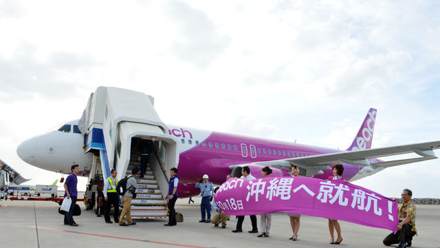 ピーチ・アビエーション(APJ)は10月18日、那覇空港のLCC専用ターミナルに就航した。同ターミナルからの初便となった那覇発関西行きMM216便は午後4時16分に出発した。乗客数は170人の予約に対して130人だった。