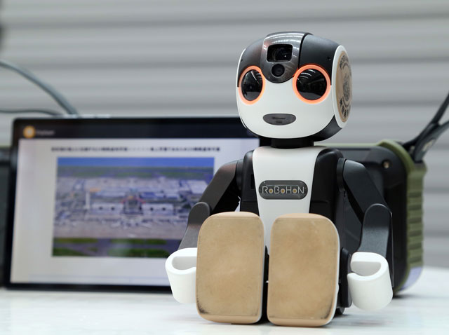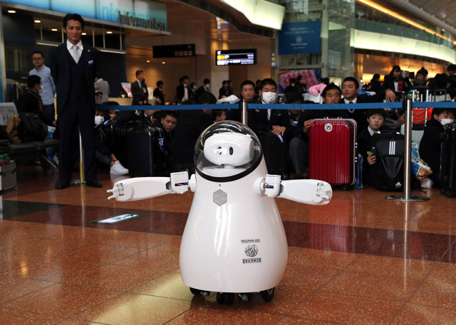 羽田空港で実証実験を行う「RoBoHoN」=16年12月14日 PHOTO: Yoshikazu TSUNO/Aviation Wire