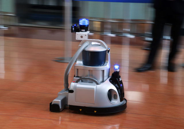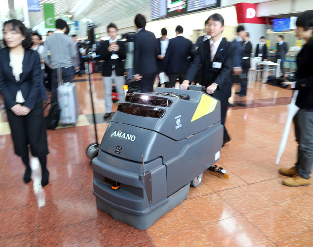 羽田空港で実証実験を行う「F.ROBOCLEAN」=16年12月14日 PHOTO: Yoshikazu TSUNO/Aviation Wire