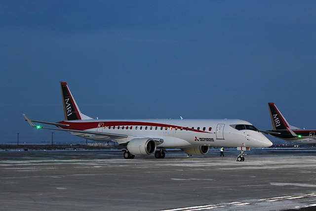 三菱航空機では、5機ある飛行試験機のうち、4機を米国へ持ち込む。残る3号機(JA23MJ)も年内に持ち込む予定だが、クリスマス休暇などにより年明けになる可能性もあるという。