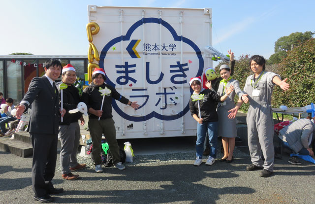 ソラシドは2003年8月1日に、2路線目となる羽田-熊本線を開設。今年4月に起きた熊本地震後初めて迎えるクリスマスに、熊本大の学生とソラシドが連携してイベントを開いた。10月に熊本大が益城町に設立した、学生や研究者が地元住民と対話して復興を支援するコミュニティー施設「ましきラボ」を活用し、地元の保育園や幼稚園児向けのイベントを開いた。