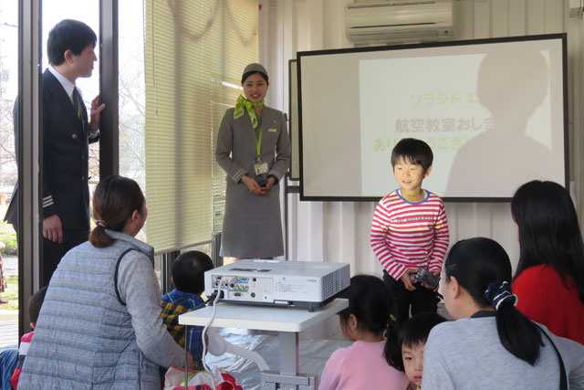 クリスマスイベント会場で開催された航空教室(ソラシドエア提供)