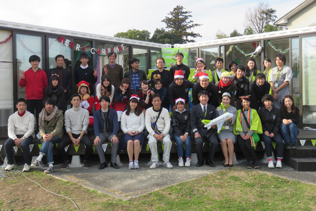 クリスマスイベントを共催したソラシドの社員と熊本大生(同社提供)