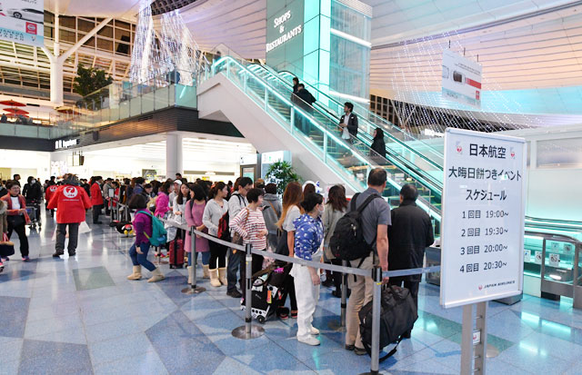 大勢の人が並んだJALの餅つきイベント=16年12月31日 PHOTO: Tadayuki YOSHIKAWA/Aviation Wire