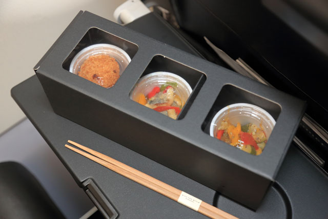 初日の出フライト0101便の招待客に配られた朝食=17年1月1日 PHOTO: Youichi KOKUBO/Aviation Wire