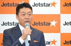 「新たな出張の選択肢を提供する」と語るジェットスター・ジャパンの片岡会長=17年2月8日 PHOTO: Yusuke KOHASE/Aviation Wire