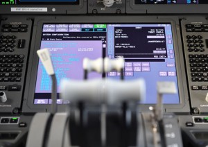 コックピットのモニターにエンジン名が「TRENT 1000-L」と表示されたANAの787-8=17年2月8日 PHOTO: Tadayuki YOSHIKAWA/Aviation Wire