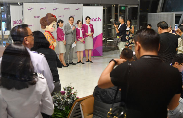 就航5周年を目前に控えた2月19日、ピーチはフライト時間が片道約5時間と、自社最長路線となる那覇-バンコク線を1日1往復で開設した。那覇空港はピーチの本拠地である関西空港に次ぐ第2拠点で、那覇発着はバンコク線開設で7路線。国内線は関西と成田、福岡の3路線、国際線は台北(桃園)と香港、ソウル(仁川)の3路線に、4都市目のバンコクが加わった。