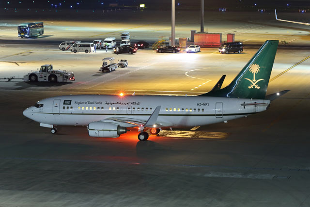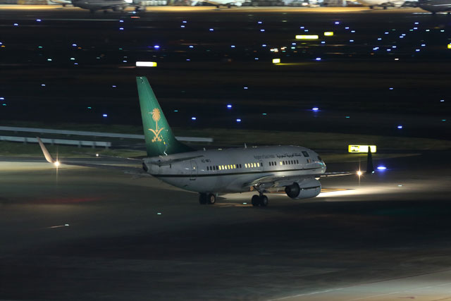このほか、サウディアの777-300ER(HZ-AK32)がチャーター機として使用され、SV7366便として午後9時すぎに北京へ向かった。このほか、サウディアの777-200ER(HZ-AKF)、サウジアラビア財務省の737-700BBJが2機(HZ-MF1、HZ-MF2)が羽田に飛来した。