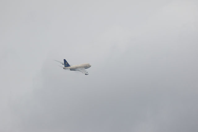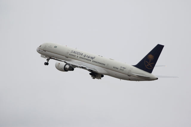 国王の専用機とともに注目を集めたのが、医療機の757-200(HZ-HMED)。機首には医療用の機体であることを示す「MED」と記され、L1からL2ドアまでの窓はつぶされていた。医療機は副務機に続き、午後1時30分ごろSVA011便として出発した。3機ともC滑走路(RWY34R)から離陸した。