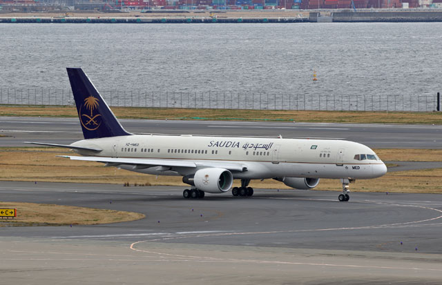 羽田で出発を待つサウジアラビア国王の医療機757-200=17年3月15日 PHOTO: Shota DOKI/Aviation Wire