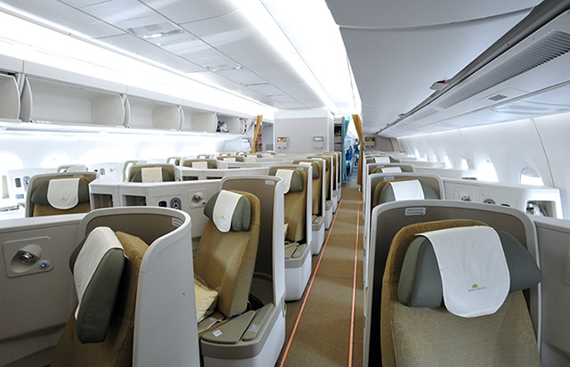 ベトナム航空のA350-900ビジネスクラス=17年3月27日 PHOTO: Yusuke KOHASE/Aviation Wire