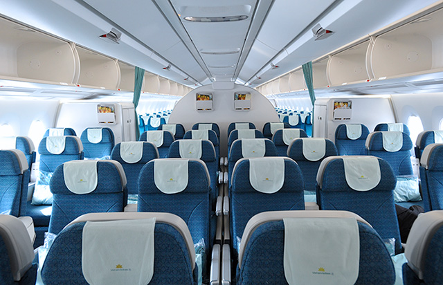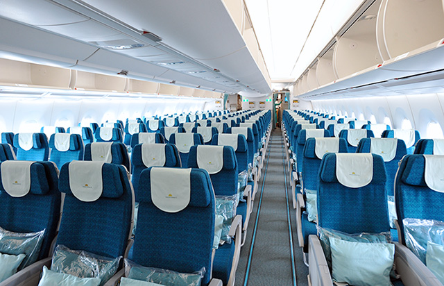 ベトナム航空のA350-900エコノミー=17年3月27日 PHOTO: Yusuke KOHASE/Aviation Wire