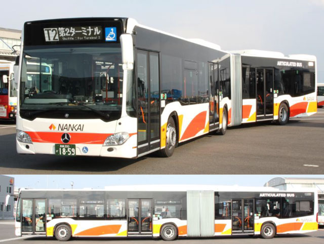 関西空港を運営する関西エアポートと南海バスは、LCC専用の第2ターミナルと第1ターミナルを結ぶ無料の連絡バスに、連節バスを4月28日から導入する。従来のバスと比べて約2倍にあたる100人程度の乗客を運べるようになる。空港内のターミナルを結ぶ連絡バスに連接車を導入するのは、国内では初めて。