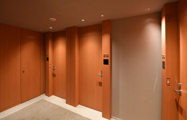 京橋店に初めて設けられたファーストキャビン最上位の客室プレミアムクラスの入口=17年4月17日 PHOTO: Tadayuki YOSHIKAWA/Aviation Wire