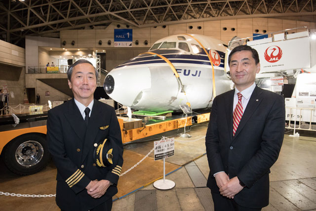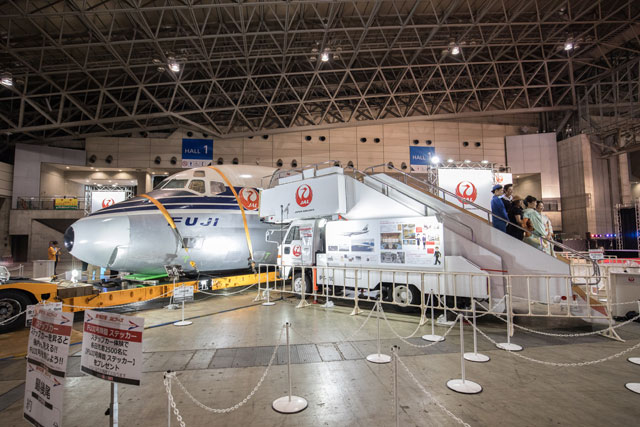 ニコニコ超会議の会場に展示されているJALのFUJI号=17年4月29日 PHOTO: Tatsuyuki TAYAMA/Aviation Wire