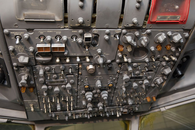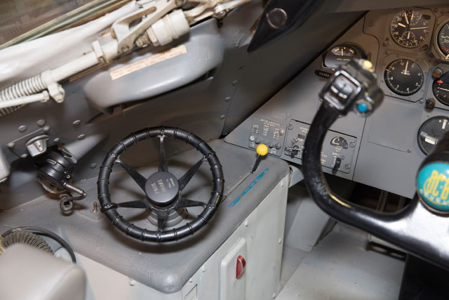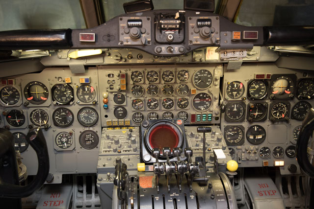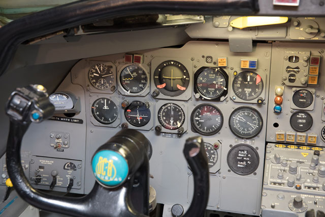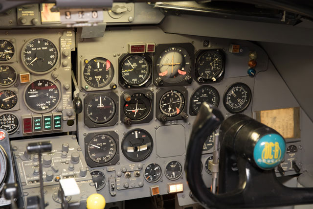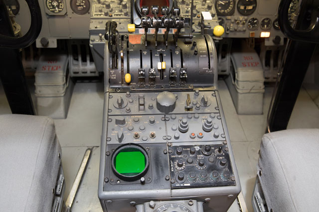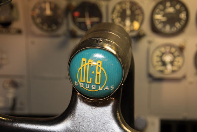 DC-8のロゴが入った操縦桿。初期のDC-8にしかないものだという=17年4月29日 PHOTO: Tatsuyuki TAYAMA/Aviation Wire