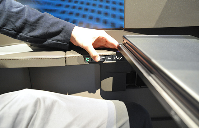 リクライニングを操作するスイッチ=17年6月15日 PHOTO: Yusuke KOHASE/Aviation Wire