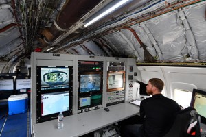 さまざまな機器が設置されたハネウェルの757試験機の機内=17年7月12日 PHOTO: Tadayuki YOSHIKAWA/Aviation Wire