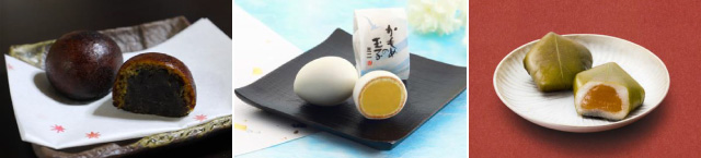 「かりんとうまんじゅう」は、黒糖まんじゅうを揚げた一品で、こがし蜜と山芋を使用した。8月1日から31日まで。「かもめの玉子」は、黄味あんをホワイトチョコレートで包んだ一品。9月1日から30日まで提供する。「田むらの梅」は、梅あんと求肥を青じそで包んだ和菓子。10月1日から28日まで提供する。
