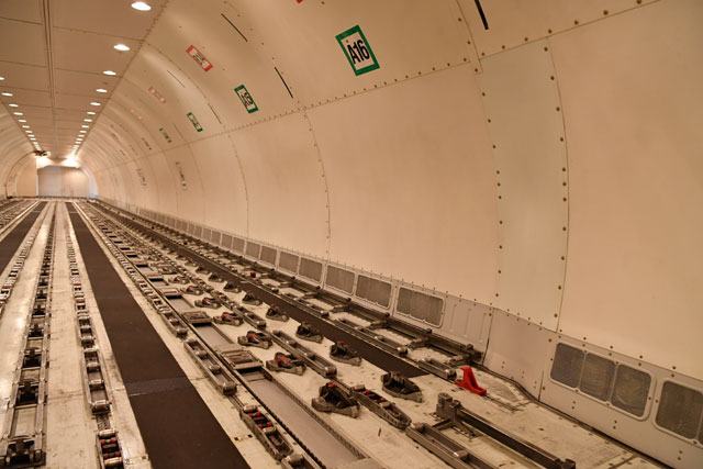 前方左側ドアを閉めて機体後方から見たANAカーゴの767-300Fの貨物室=17年8月22日 PHOTO: Tadayuki YOSHIKAWA/Aviation Wire