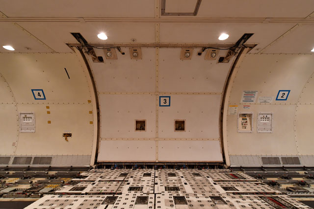 機体後方から見たANAカーゴの767-300Fの貨物室=17年8月22日 PHOTO: Tadayuki YOSHIKAWA/Aviation Wire