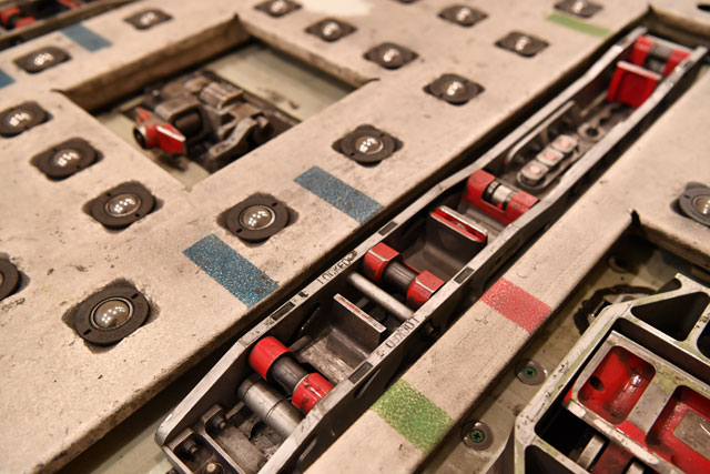ANAカーゴの767-300Fの貨物室床に設けられた貨物用パレットを動かすローラー=17年8月22日 PHOTO: Tadayuki YOSHIKAWA/Aviation Wire