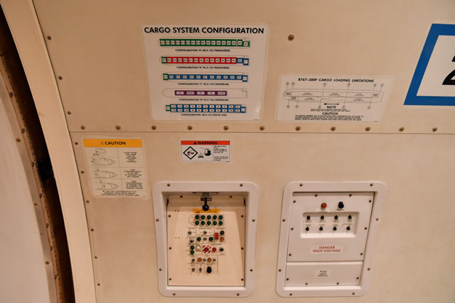 ANAカーゴの767-300Fの貨物室に設けられた前方左側ドア横のスイッチや灯火=17年8月22日 PHOTO: Tadayuki YOSHIKAWA/Aviation Wire