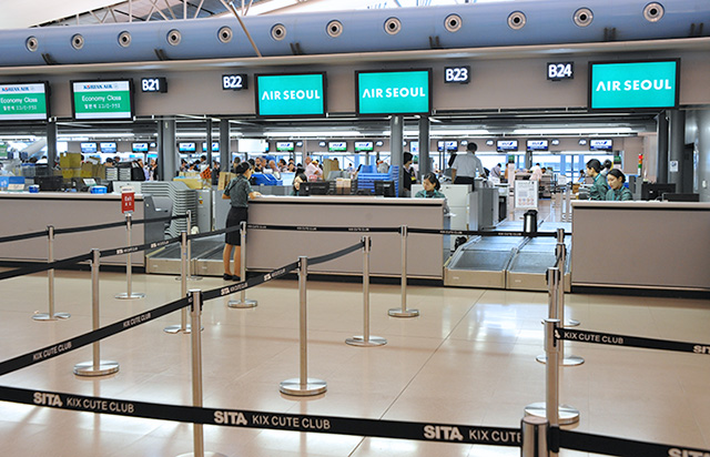 関西空港第1ターミナル4階のエアソウル出発カウンター=17年9月12日 PHOTO: Yusuke KOHASE/Aviation Wire