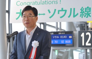 関空からの初便出発前には、12番搭乗口で就航セレモニーを開催し、エアソウルの柳光熙(リュ・グァンヒ)代表や、関空を運営する関西エアポートの山谷佳之社長らが出席。セレモニーで柳代表は「関西就航をきっかけに、日韓両国の交流を深めたい」と述べた。
