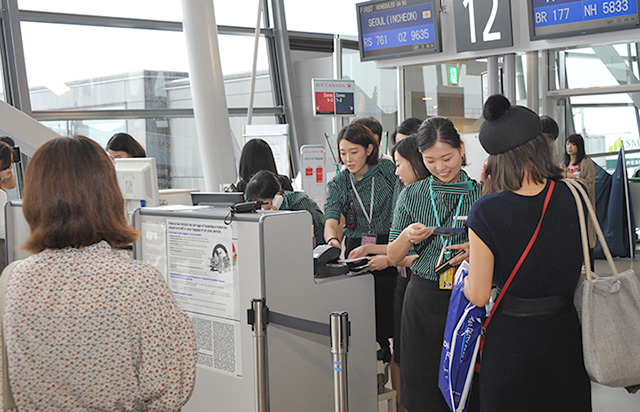 ソウル行きRS761便に搭乗する利用客=17年9月12日 PHOTO: Yusuke KOHASE/Aviation Wire