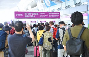 仙台空港で台北行きのチェックインを待つ利用客=17年9月25日 PHOTO: Yusuke KOHASE/Aviation Wire