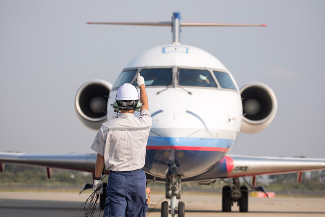 仙台空港を出発したCRJ200に手を振るIBEXの社員=17年9月27日 PHOTO: Tatsuyuki TAYAMA/Aviation Wire