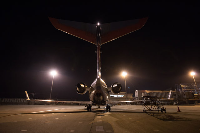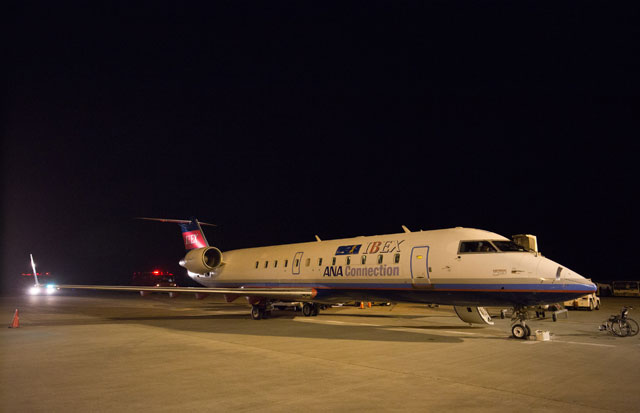 最終便となった福岡発仙台行きFW17便の運航を終えたIBEXのCRJ200 3号機=17年9月27日 PHOTO: Tatsuyuki TAYAMA/Aviation Wire