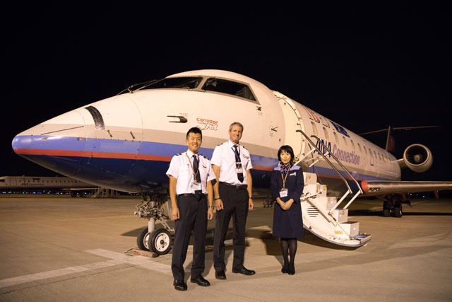 CRJ200最終便を担当したIBEXのパイロットと客室乗務員=17年9月27日 PHOTO: Tatsuyuki TAYAMA/Aviation Wire
