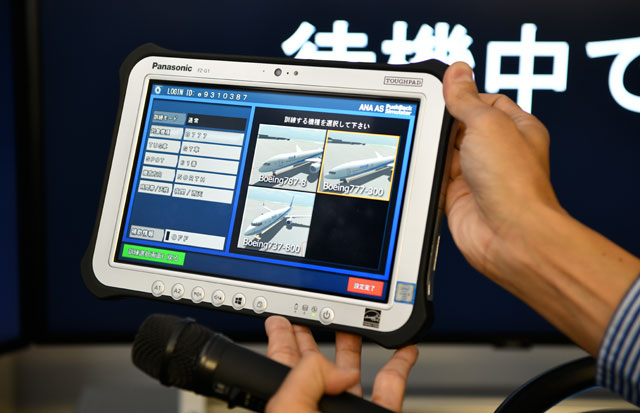 ANAが公開したトーイング・トラクターによるプッシュバックのシミュレーターのコントロール用タブレット=17年10月4日 PHOTO: Tadayuki YOSHIKAWA/Aviation Wire