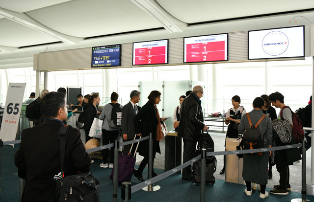エールフランスの羽田発パリ行きAF279便に搭乗する乗客=17年11月27日 PHOTO: Tadayuki YOSHIKAWA/Aviation Wire