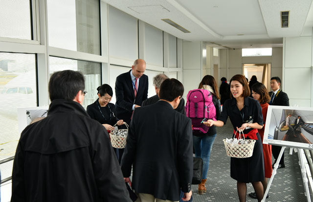 日本就航65周年を記念し羽田の搭乗口前に集まるエールフランスの関係者=17年11月27日 PHOTO: Tadayuki YOSHIKAWA/Aviation Wire