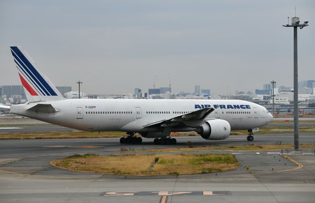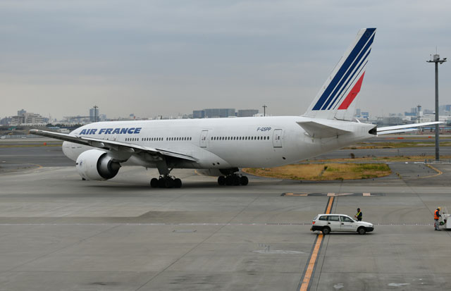 27日のパリ行きAF279便(777-200ER、登録番号F-GSPP)は、午後1時39分に145番スポットから出発した。同機は旧塗装機で、エールフランスによると、日本路線では最近あまり見かけなくなっているという。